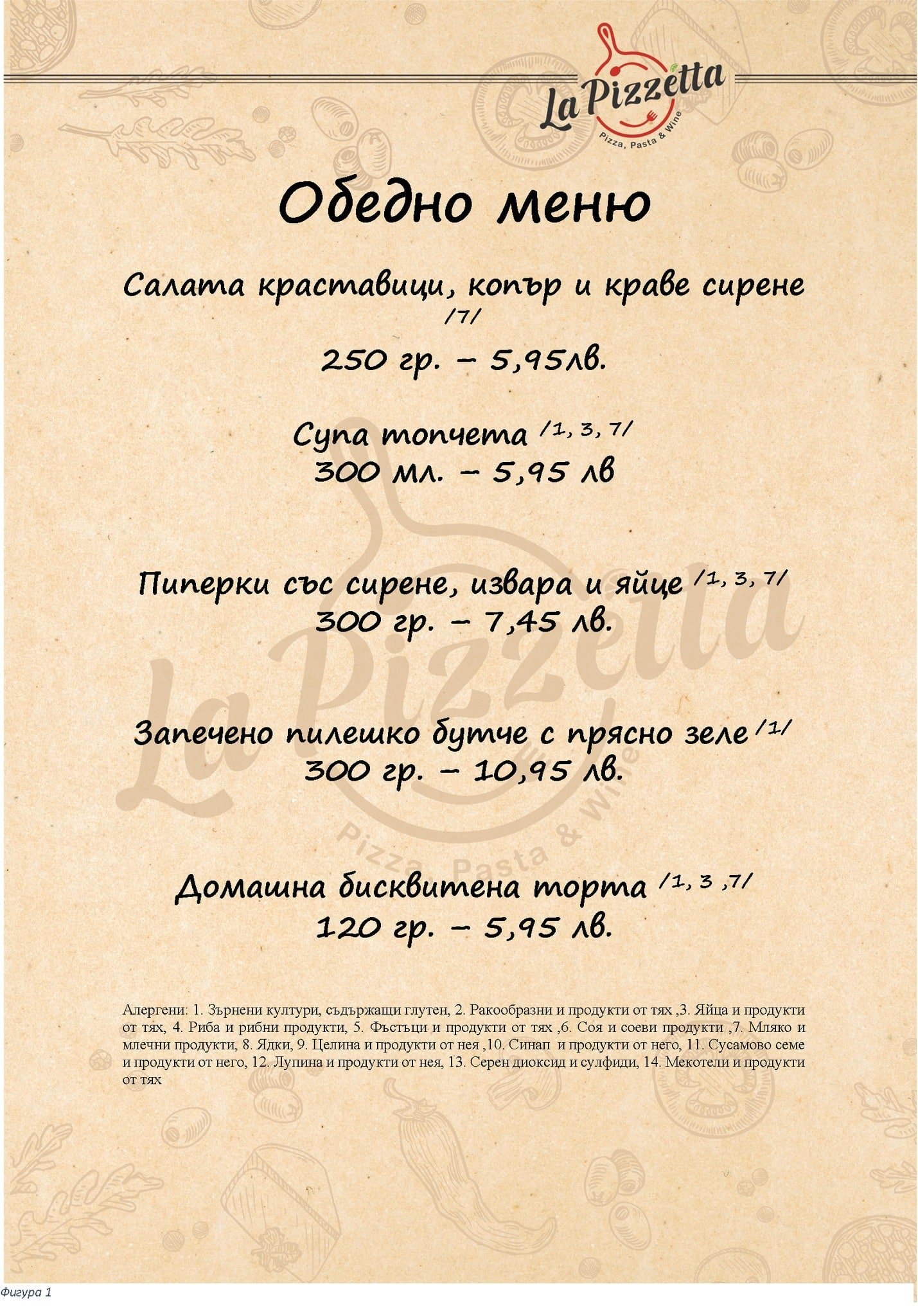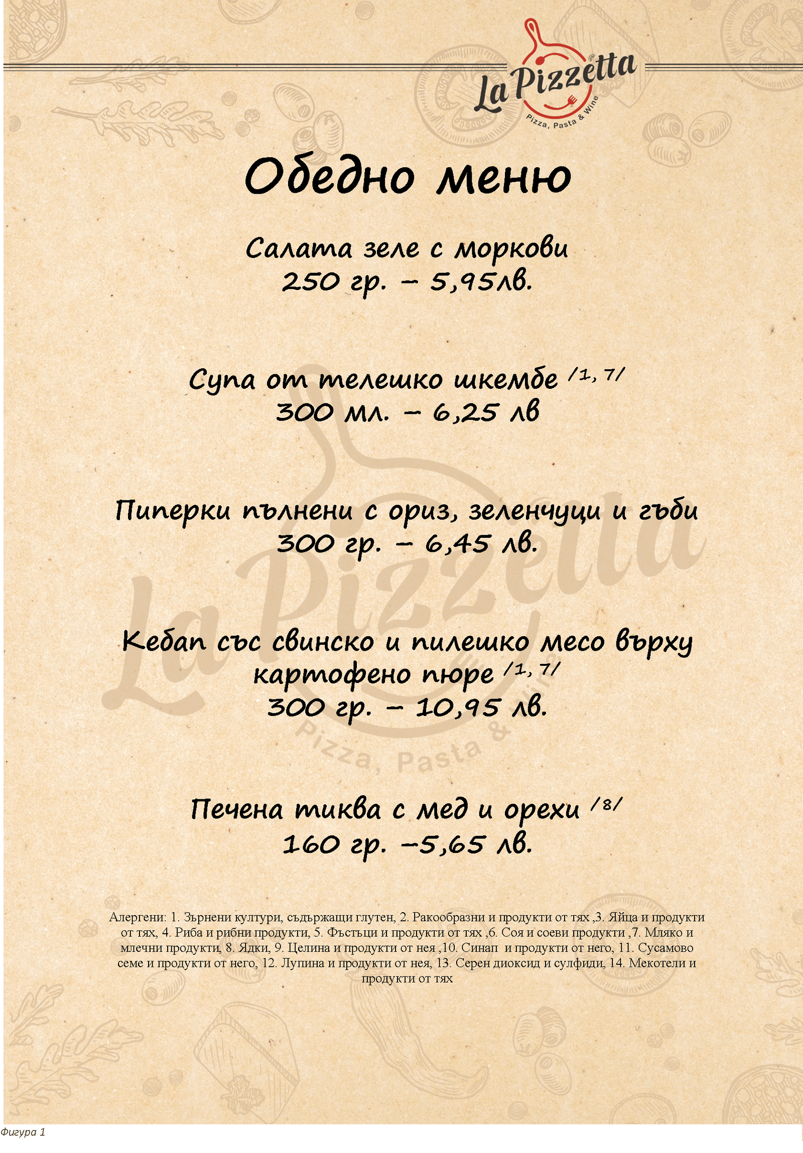 Нашето меню предлага разнообразие от пици, приготвени с пресни съставки и традиционни рецепти.