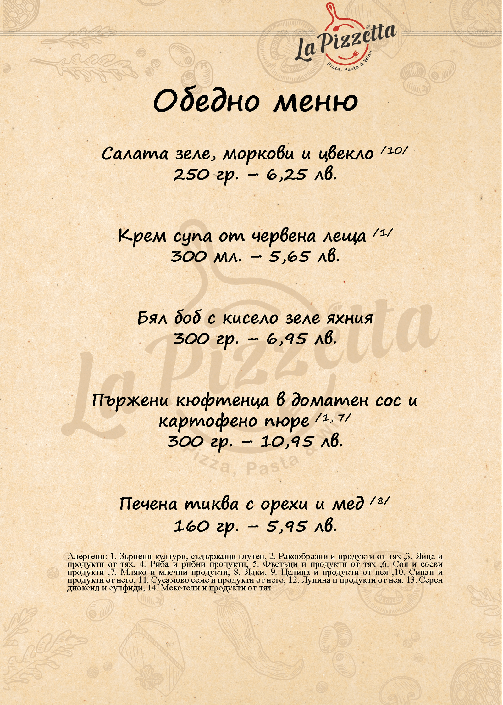 В пицария La Pizzetta се гордеем с качеството на нашите ястия. Нашият екип от професионални готвачи създава изискани ястия, вдъхновени от италианската кухня.